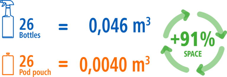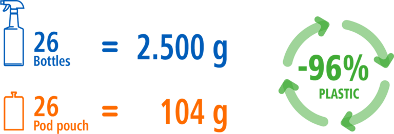 ECO ONE® ultra-concentrated pod pouches are easy to dose, with no splashes or unwanted stains that could damage surfaces. Furthermore, there is no direct contact with the product and no risks during handling.