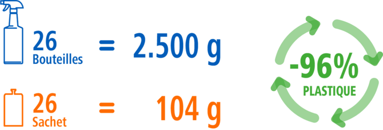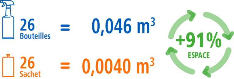 Les produits à dose unique ultra concentrées ECO ONE® sont des sachets de 40 ml de liquide par diluer à l’eau pour le nettoyage et la désinfection de tous les types de surfaces.